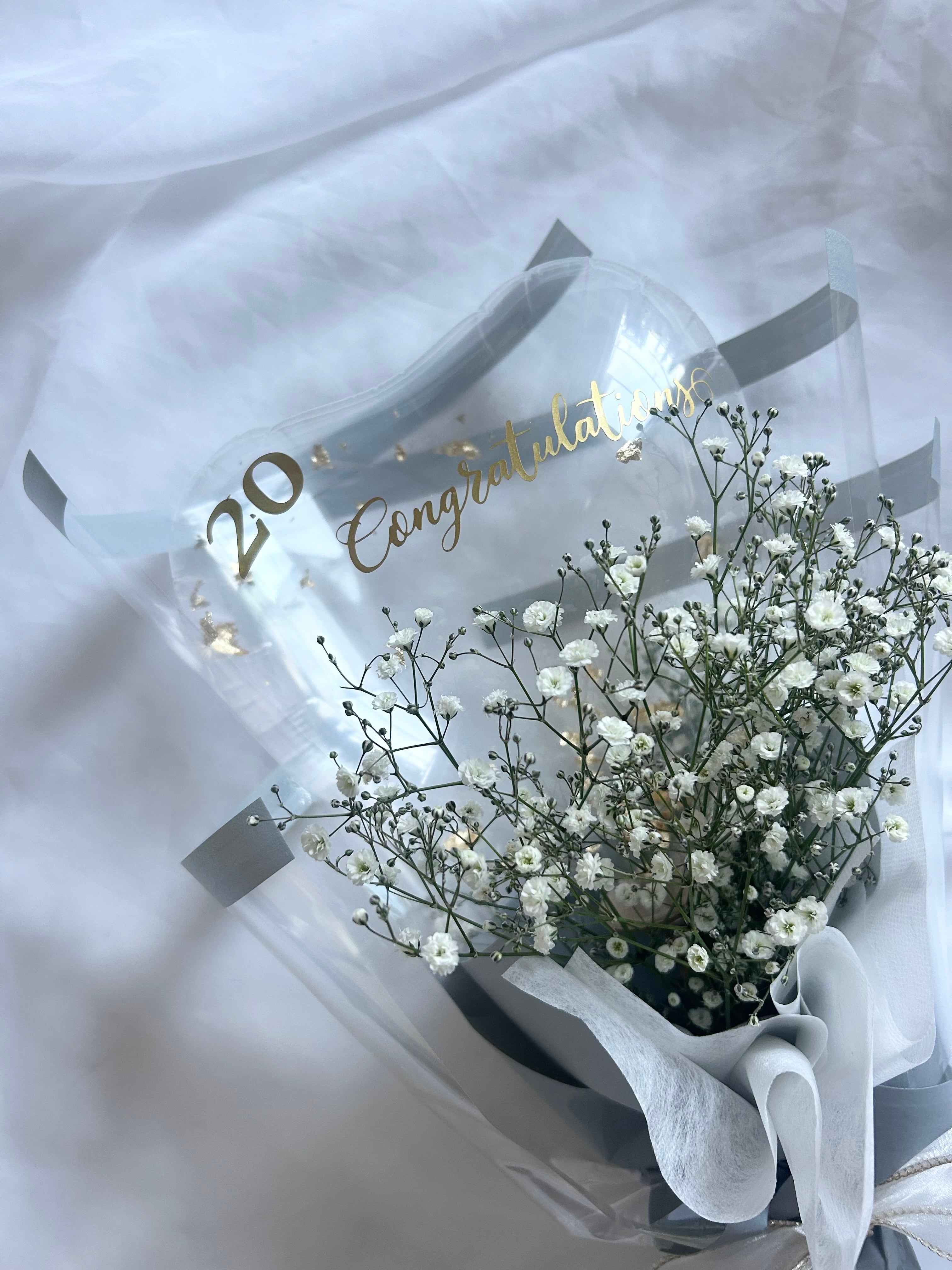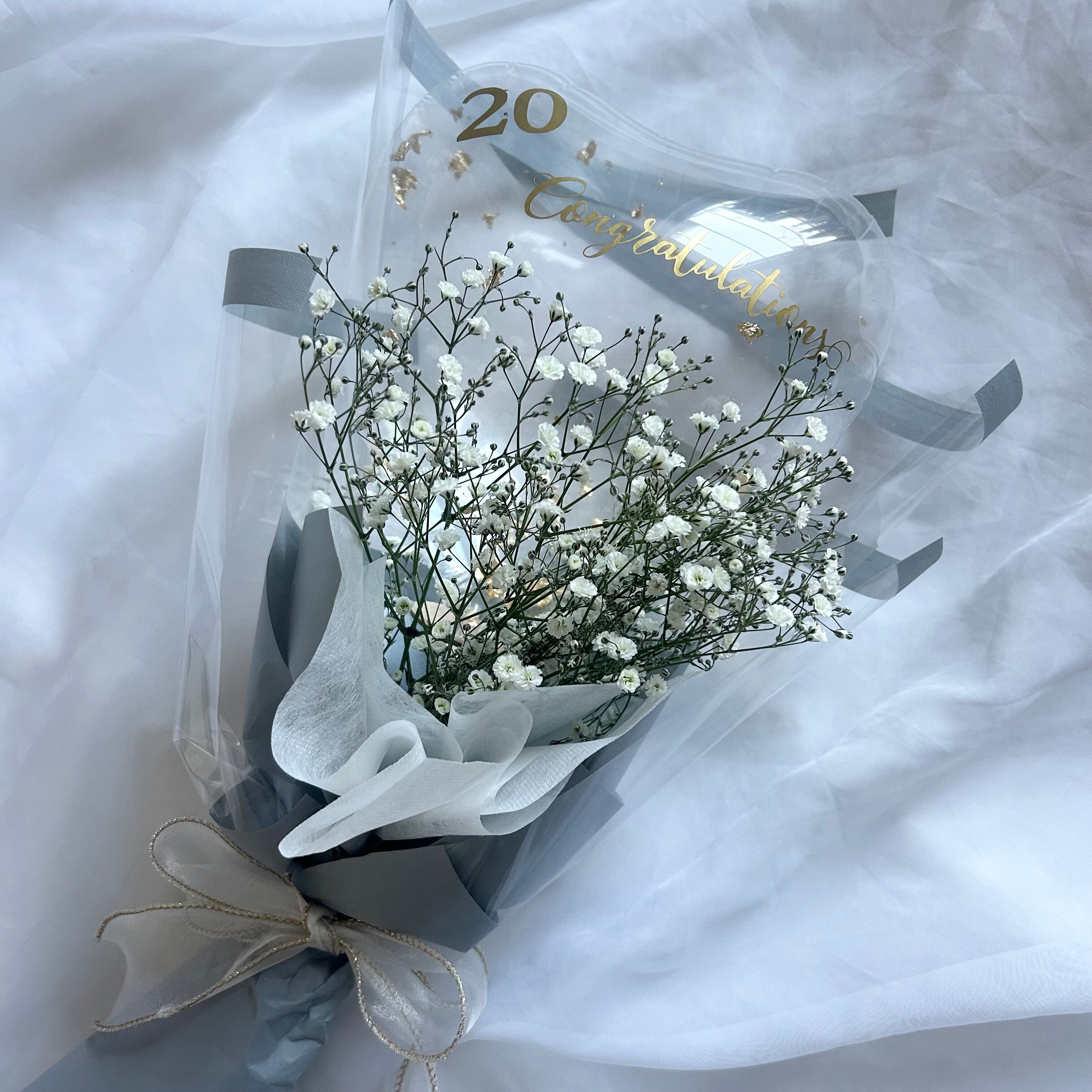 かすみ草のハートバルーンブーケ